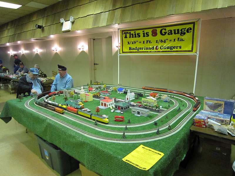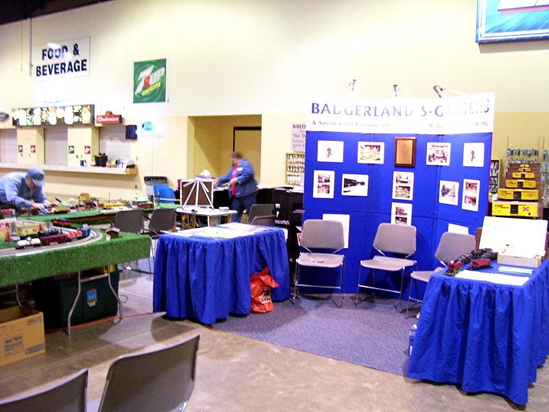 There is a lot going on around this Hi-rail layout the club uses for entertainment as well as promotion of the club. Badgerland has one of the best informational booths at any show with videos of most of AC Gilberts accessories in action. Take the time and find out what S-Scale is all about. You won't be disappointed.