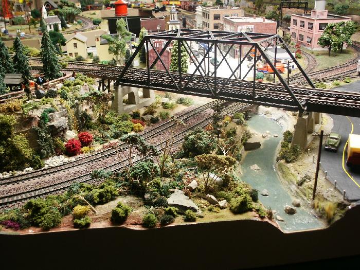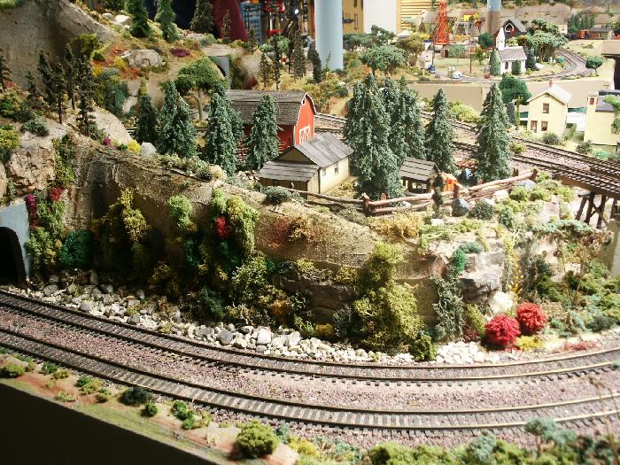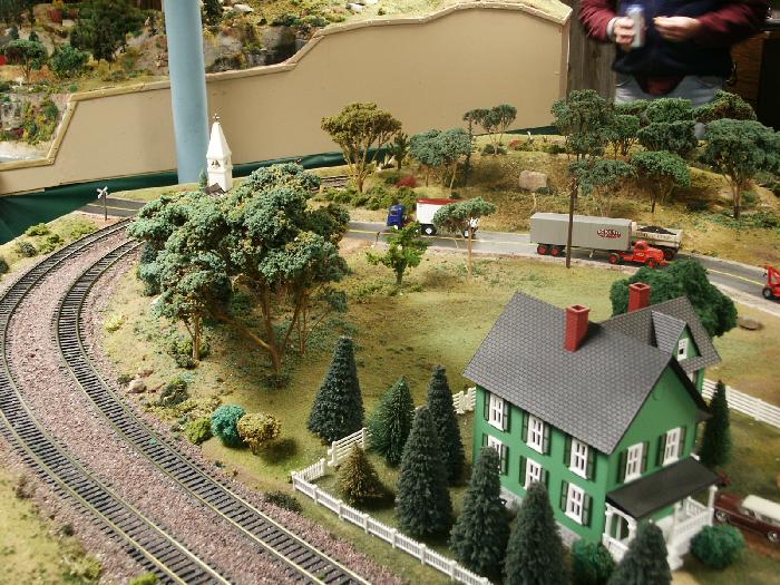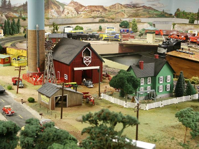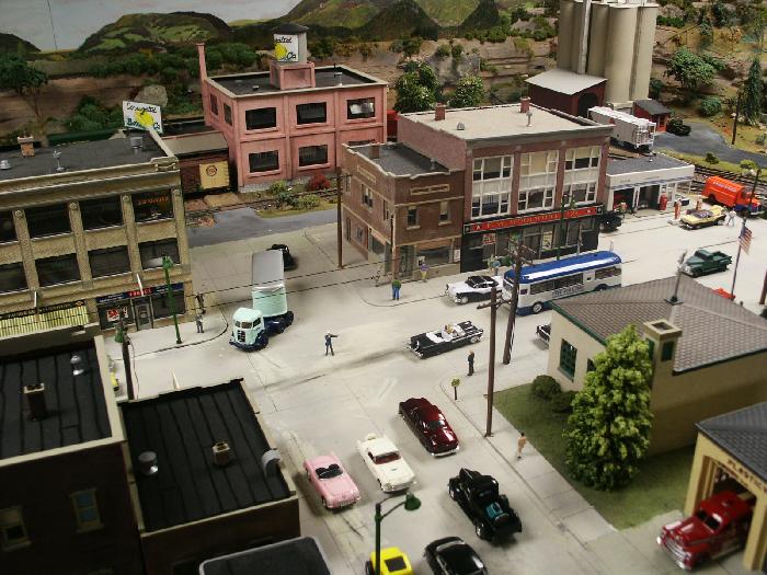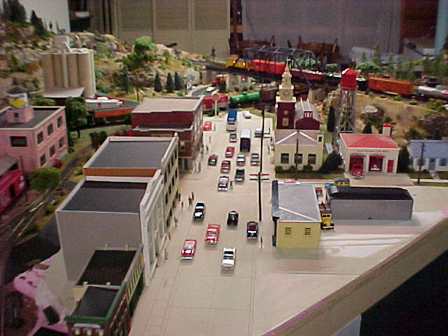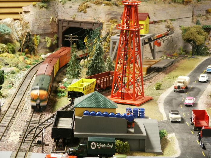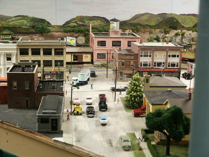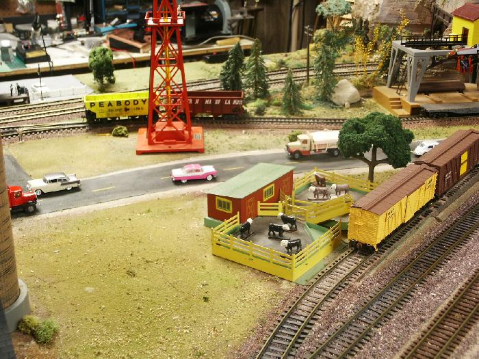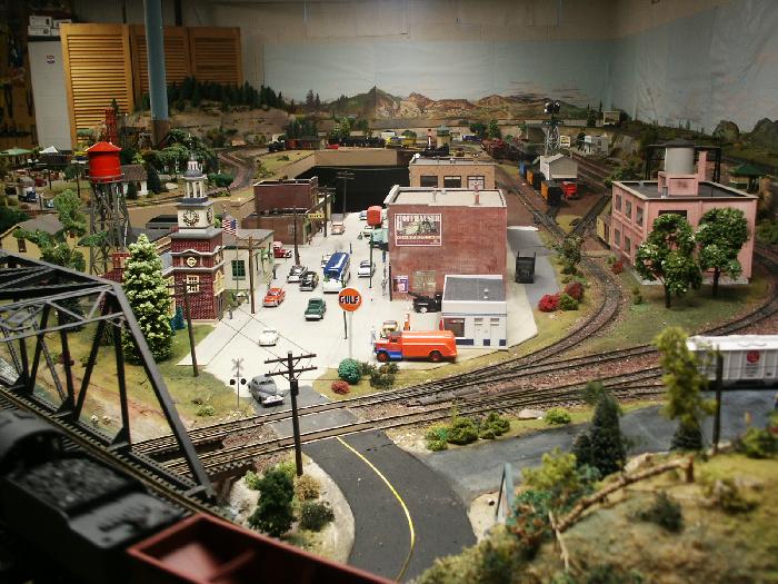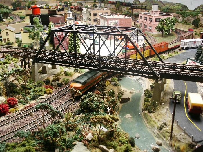 Steve's layout takes place at the foot hills of a mountain range somewhere in the American West possibly between Denver and Galveston allowing service from both railroad lines. His freight and passengers are delivered to the city via Great Western and Santa Fe Railroads. Businesses are serviced in town as well as a coal mine in the foot hills. Running the Great Northern allows traffic from the Burlington, CB&Q and many others and the herald and war paint from the Santa Fe is unforgettable.