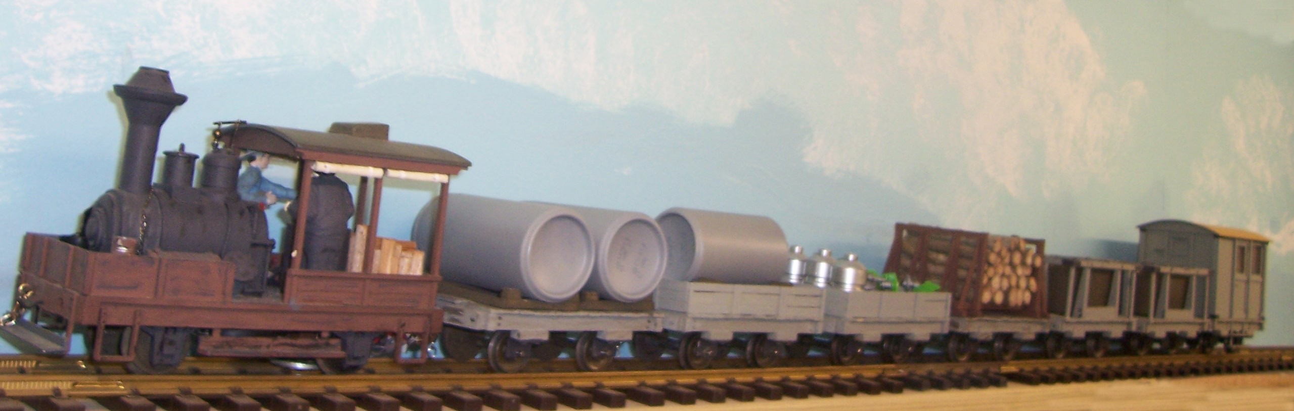 The first "Drop-On" body is a wood construction 0-4-0 Climax/Dunkirk Locomotive.