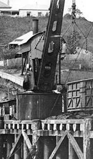 slewed over ship holds for unloading coal. The crane then returns the hopper to the corresponding under carriage.