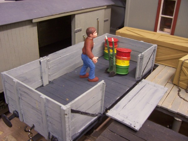 F Class, Four plank open wagon with working drop sides, scratchbuilt in wood.