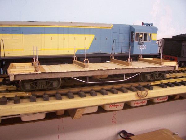 QFW Class, Quarry Flat Wagons, made from split pine for interchangeable loads.