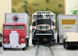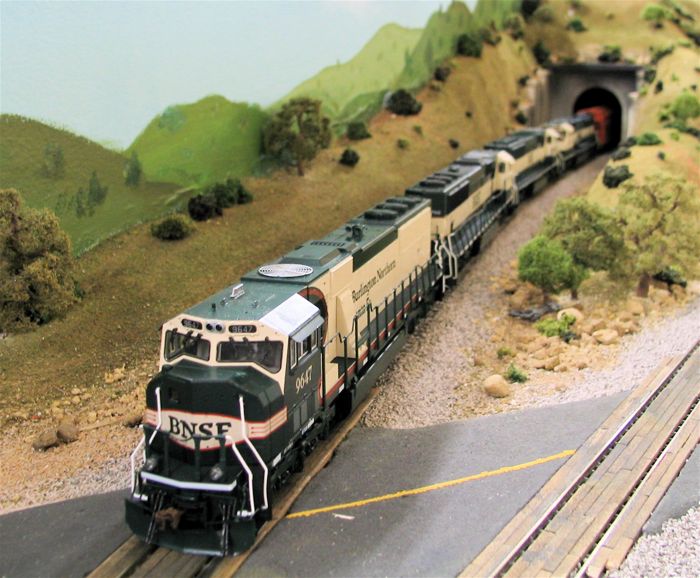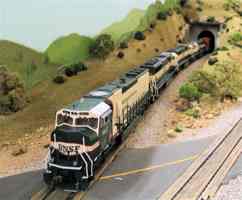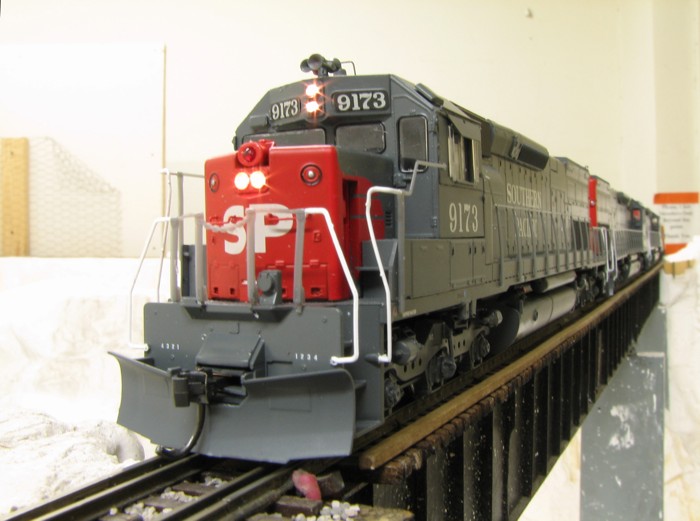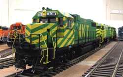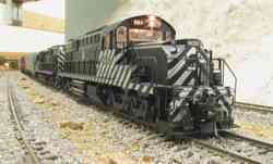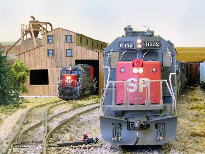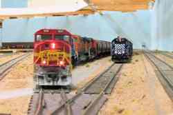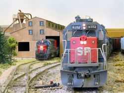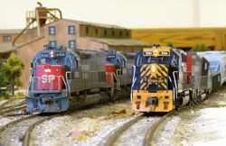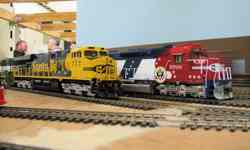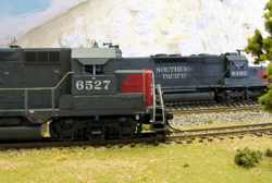 Fan of the rumble and growl of big block prime movers, traction motors, and dynamic brakes? Then stop here for a while & check out some of the diesel-electric motive power commonly seen on the California Southern. Railroads including AT&SF, SP, UP, D&RGW, MRL, SOO, CN, DM&IR, C&NW, MKT, BNSF and others take trips and switch cars throughout the layout.