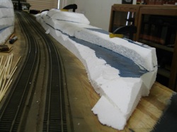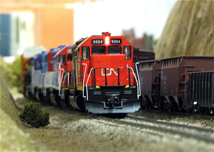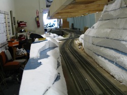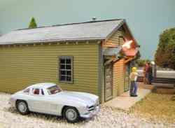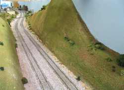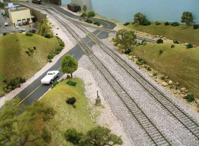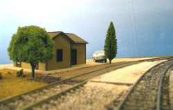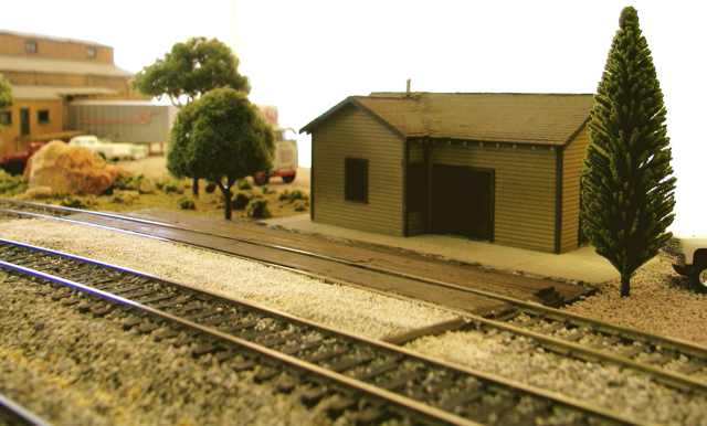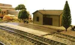Spadra Spadra has gone through a few major changes since it's first appearance on the layout. Initially this was supposed to be a fairly urban area with large buildings and grade crossings. After much debate, the members voted to convert the area to a more rural, hill covered area. This made the reverse track less noticeable as it returns from the upper loop. Passenger trains stop on the siding that serves the furniture factory to pick up and drop off passengers. Longer freight trains often require helpers through this block to help them up the 2% to 2.5% eastbound grade that continues past our Furniture Factory and through Esperanza. |