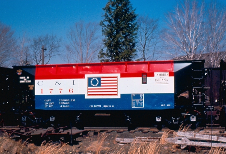 Click on the above photo to see a full-sized picture of the specially painted C&I bicentennial train. This photo by G.G. Haines is part of a collection at www.northeast.railfan.net
