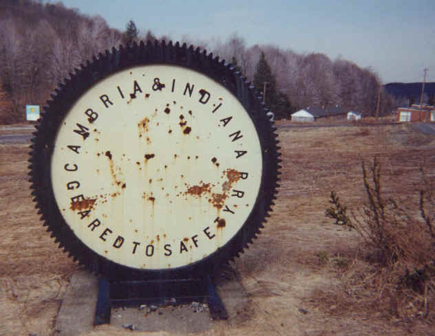 The two photos appearing below were also taken in late March, 2001. A metal cut-out of an SW1500 locomotive painted to look like C&I #17 used to be attached to the middle of the gear. It was removed when the railroad shut down.