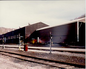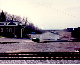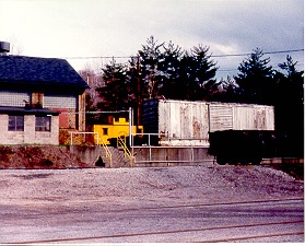 An epilog/editorial - 2001: Since the railroad shut down in the summer of '94, this area has been more or less neglected. Everything used to be neat and in its place, the grass near the office finely trimmed. Now everything is overgrown, the tracks torn up and the storage tanks salvaged... not a pretty sight. It's sad, and the worst part is that most of the windows in the various buildings have been broken by ignorant, stupid little vandals. The old freight office (building in center of top left photo) was burned down by an arsonist or arsonists. The C&I yards, along with the town of Colver, are included in the National Register of Historic Places. The little punks who have engaged in this vandalism have no respect for this fact or for the legacy of this once-mighty short line railroad that employed so many area people over most of the last century. (For many years, the C&I produced more revenue per mile of track that any other railroad in the nation.) The photo below was taken in late March, 2001: