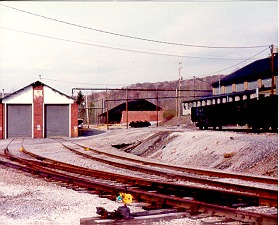 looking toward the big white engine house; entering Colver from the north - office just ahead, left of the track.