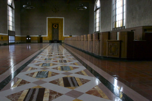 The original high-vaulted ticket counter area is used for Train Day Activities, and TV and movie filming.