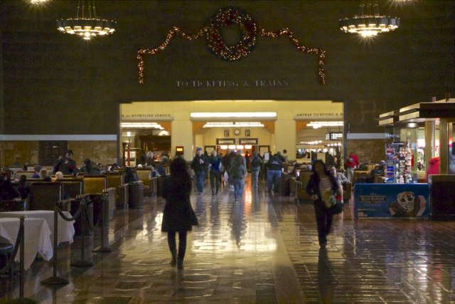 A Christmas tree was at the Alameda entrance inside Los Angeles Union Passenger Station.