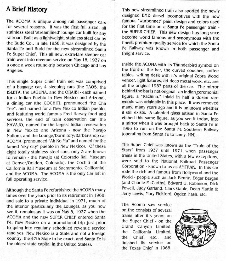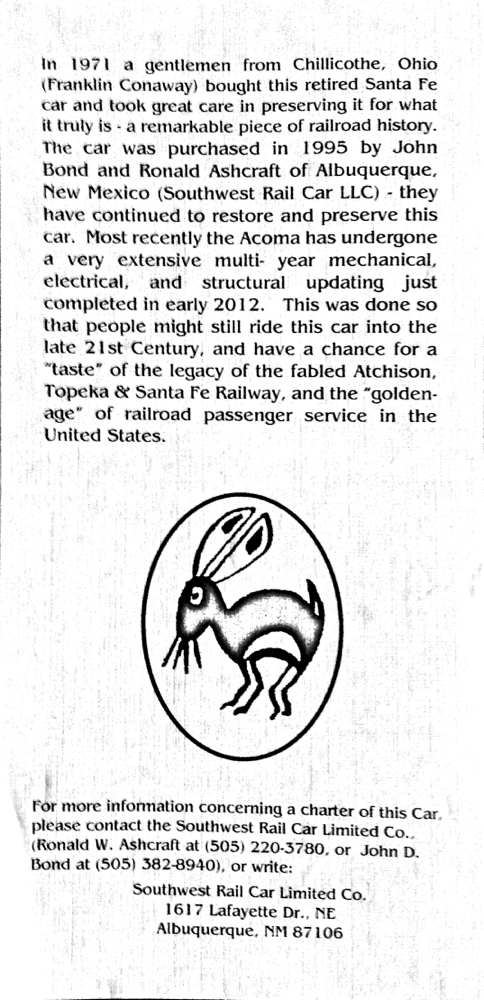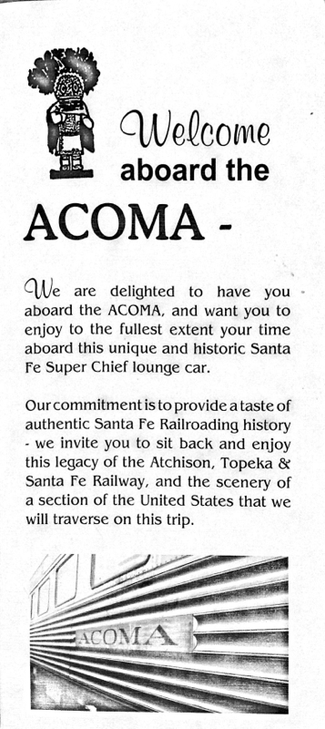 On our way down, during daylight, we had trailed the cab car with the ACOMA's vestibule