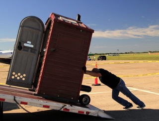 The Port-o-Jet Outhouse is a standard size and model port-o-john with
