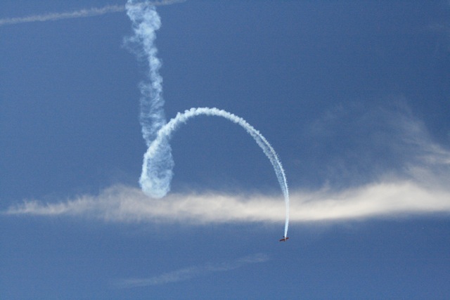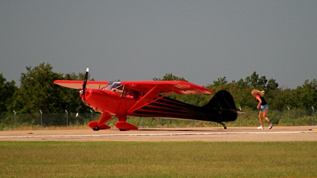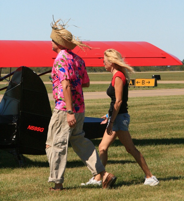 Erik had a comedy act where, before the show, he walked around the crowd with a straw hat and a martini glass, looking very out of place for an air show. He eventually made it out to the announcer and said that he had seen Jimmy Buffet in California and Jimmy had told him to come to Missouri for the Air Show and he'd give him a ride in an airplane. The announcer asked a pilot to take him to an adjoining town's airport and leave him so we could go on with the show. As they walked to the plane, Erik lay down under the plane and wiggled the tail rudder. The pilot and Erik got into the plane and taxied out. The announcer said he saw a spring handing down from under the rear of the plane as they left the announcer's stand. The pilot got out, once they were on the runway, to check the dangling spring and Erik takes off in the plane, very eradically, leaving the girl pilot standing on the runway. Then he takes off and the announcer plays along for a while, then announces who Erik really is and announces the many stunts that Erik did for his show.