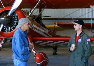 Bob Williams, Photographer, (left), Bob Richards, Pilot (right). In front of Susan Dacy's Stearman.