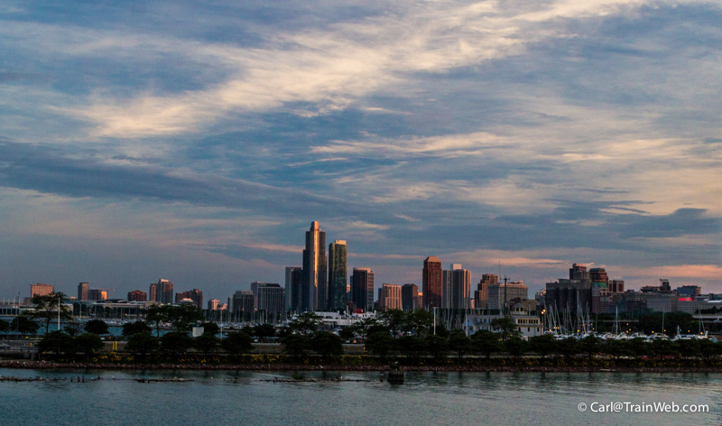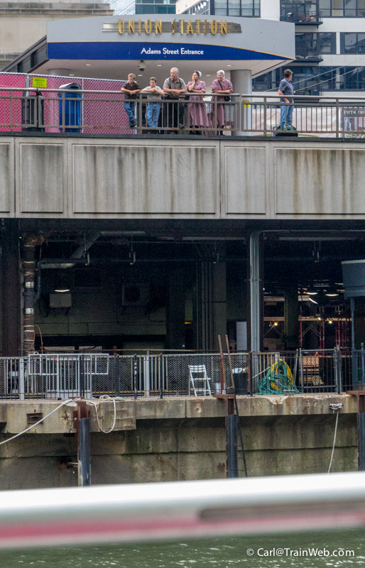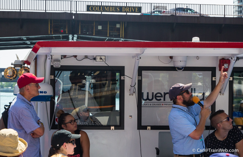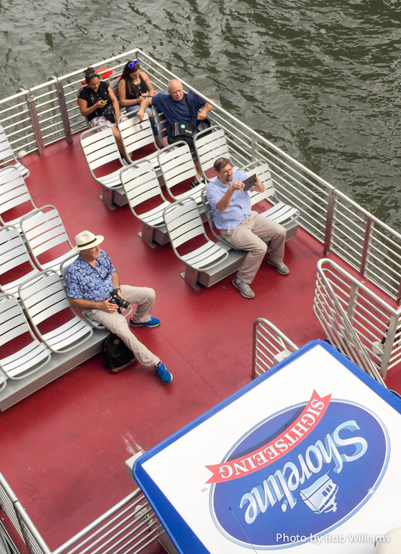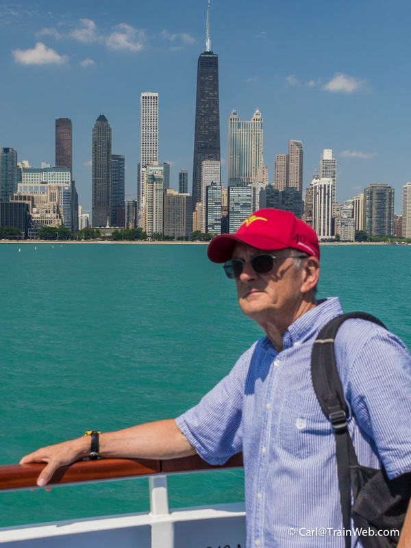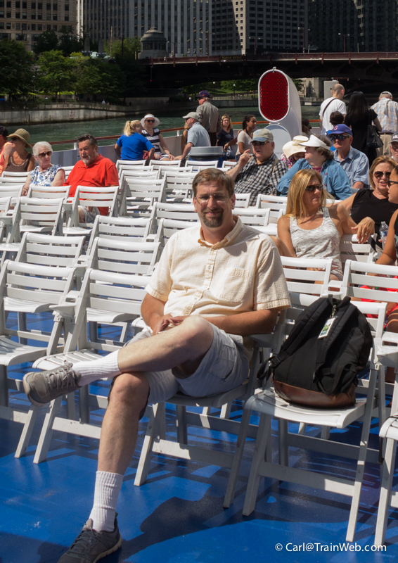 Chicago skyline, "L", and vents on the top of our tour boat.