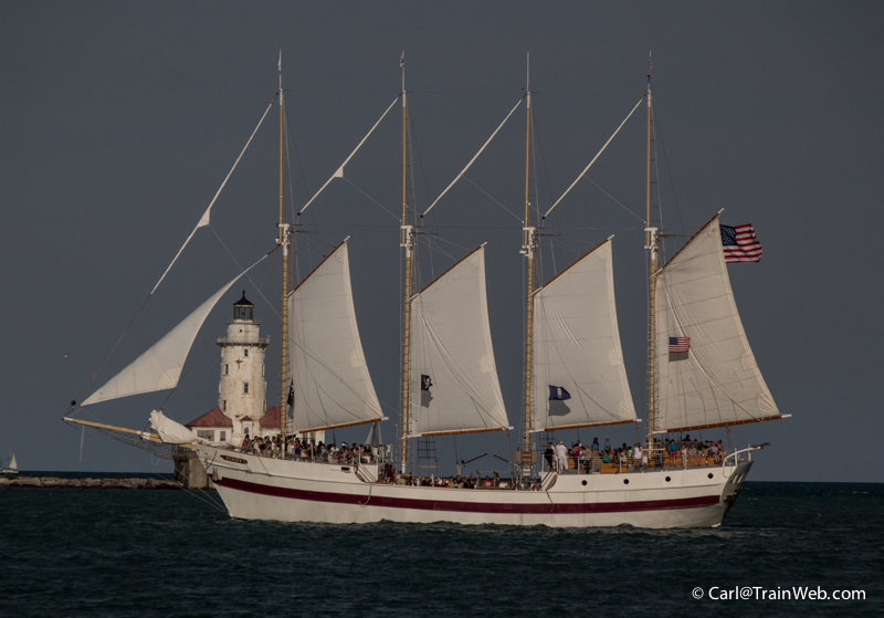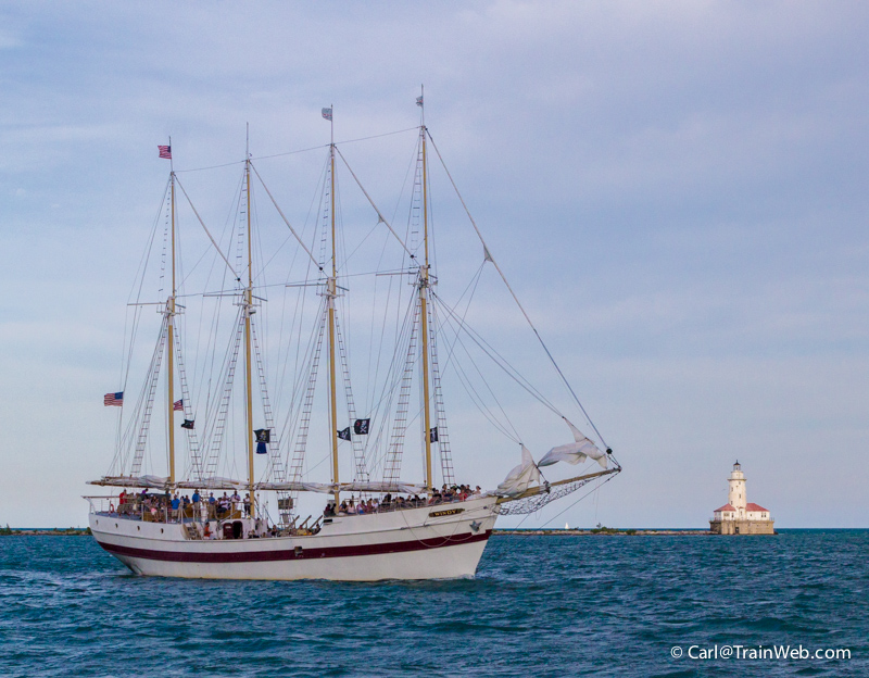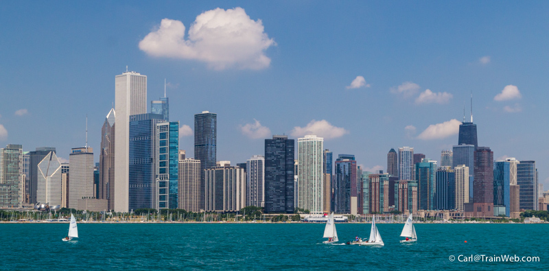 Sailboats, Monroe Harbor, and Chicago skyline south of Navy Pier.