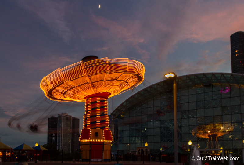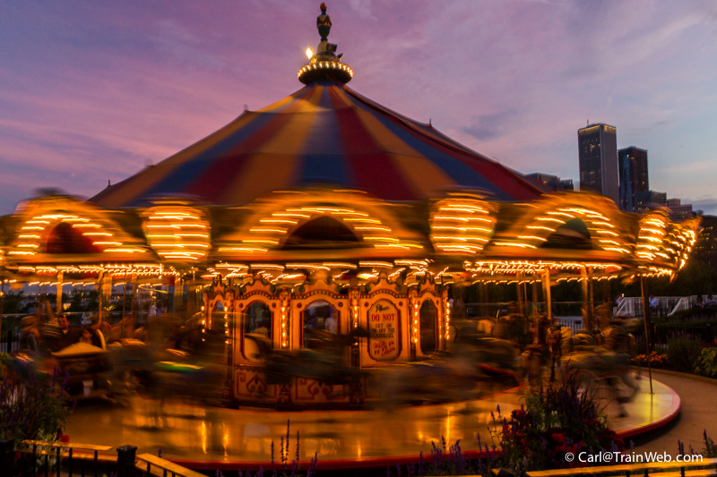 The Merry-Go-Round on Navy Pier with Chicago downtown background.