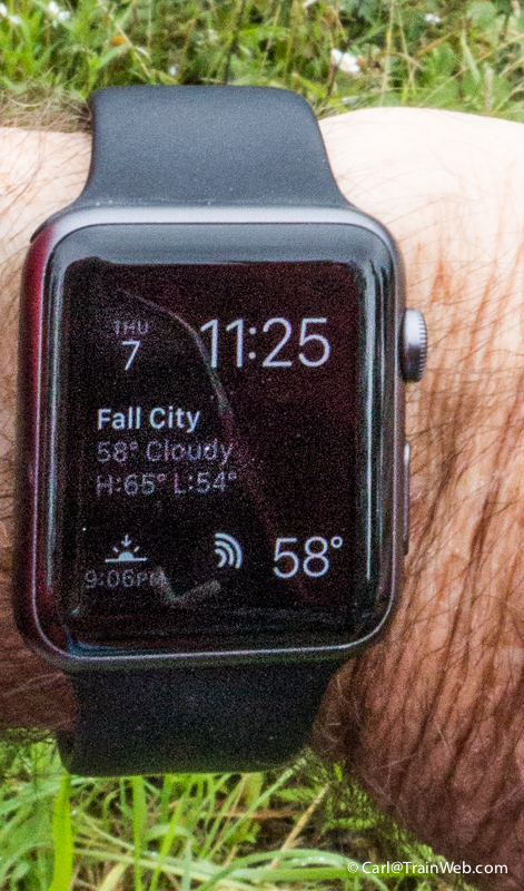 I like my iWatch for the location, temperature, date, time, and sunset time.