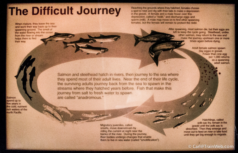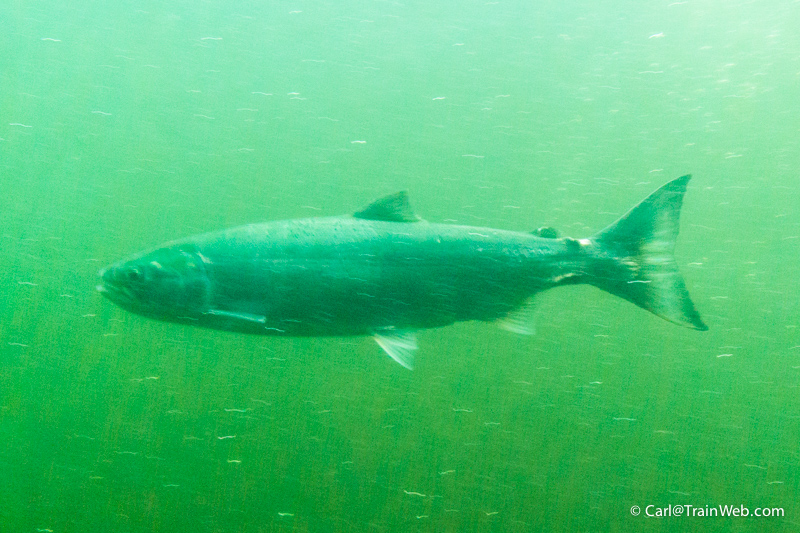 Salmon going up the fish ladder to lay their eggs, never to return.