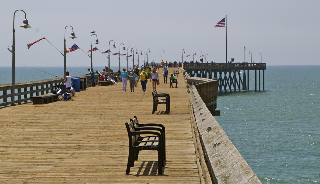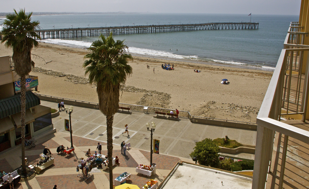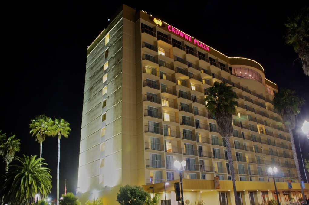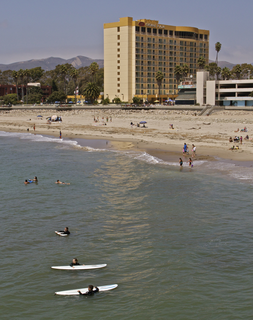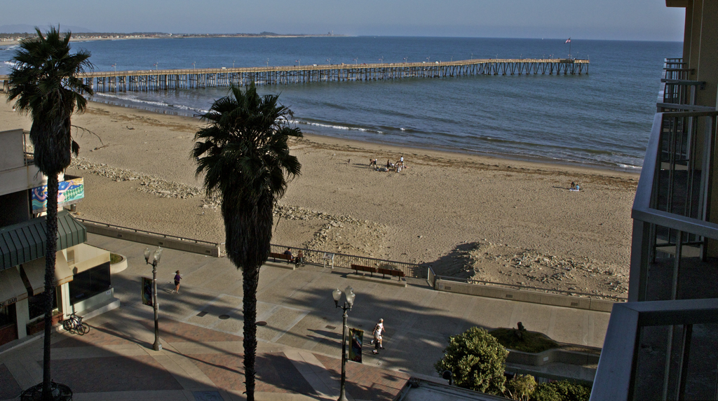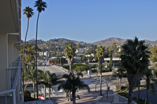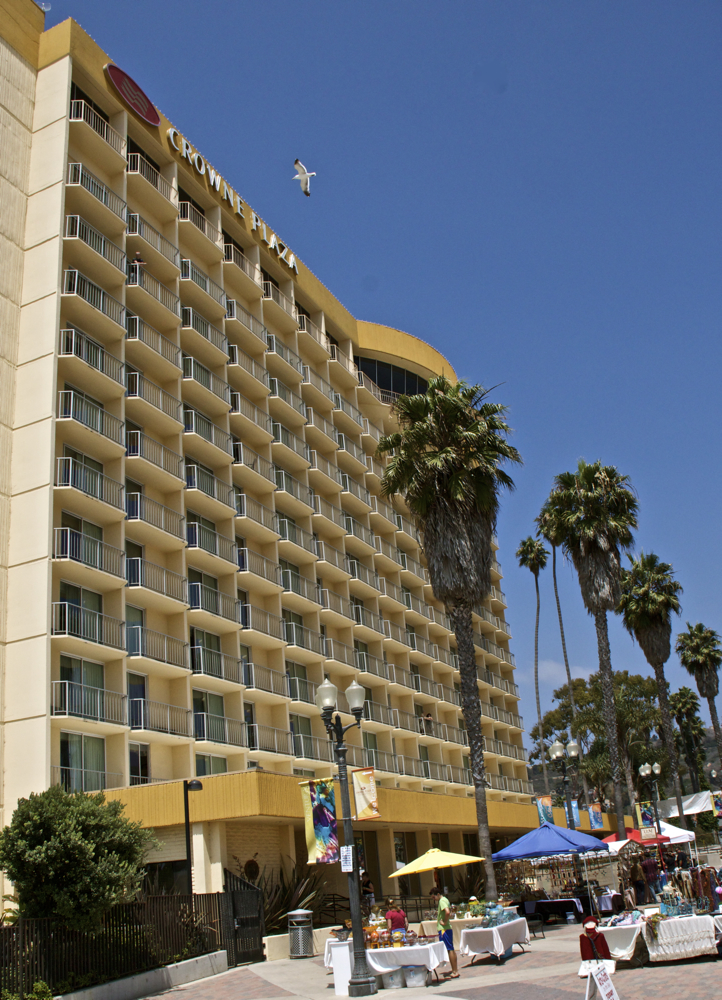 ![]() The pier is a nice platform for taking a photo back toward the Crowne Plaza Hotel and the coastal mountains beyond. |