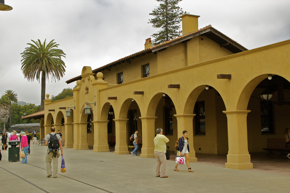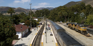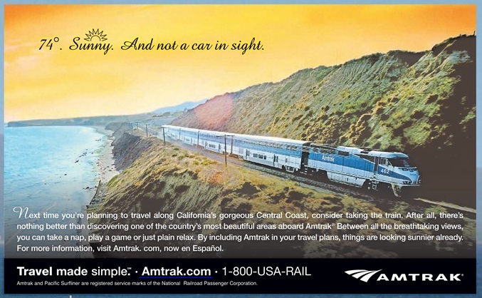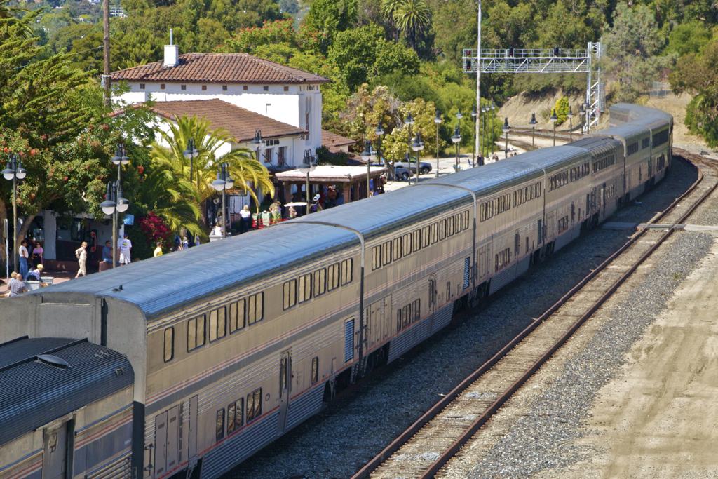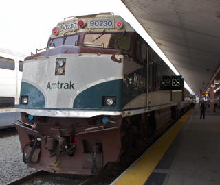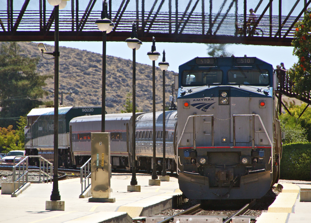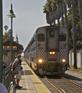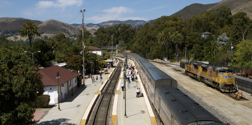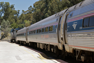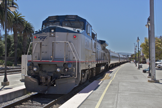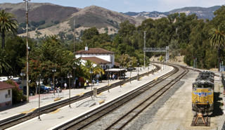 ![]() While waiting for our Bus to Solvang, from the pedestrian bridge, we watched the Coast Starlight arrive from the north. |