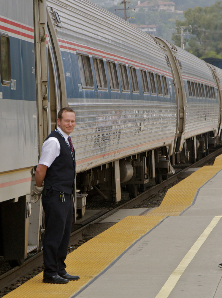Soon the single-level consist returned (right) from San Luis Obispo, and we were on our way to nearby Ventura for our final night. |