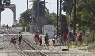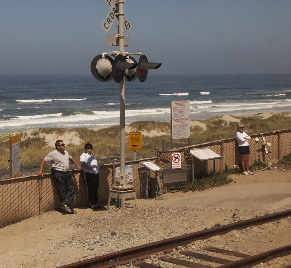 ![]() Luckily, none of the trespassers were hit by the arriving train, and we boarded and headed toward LA. |
