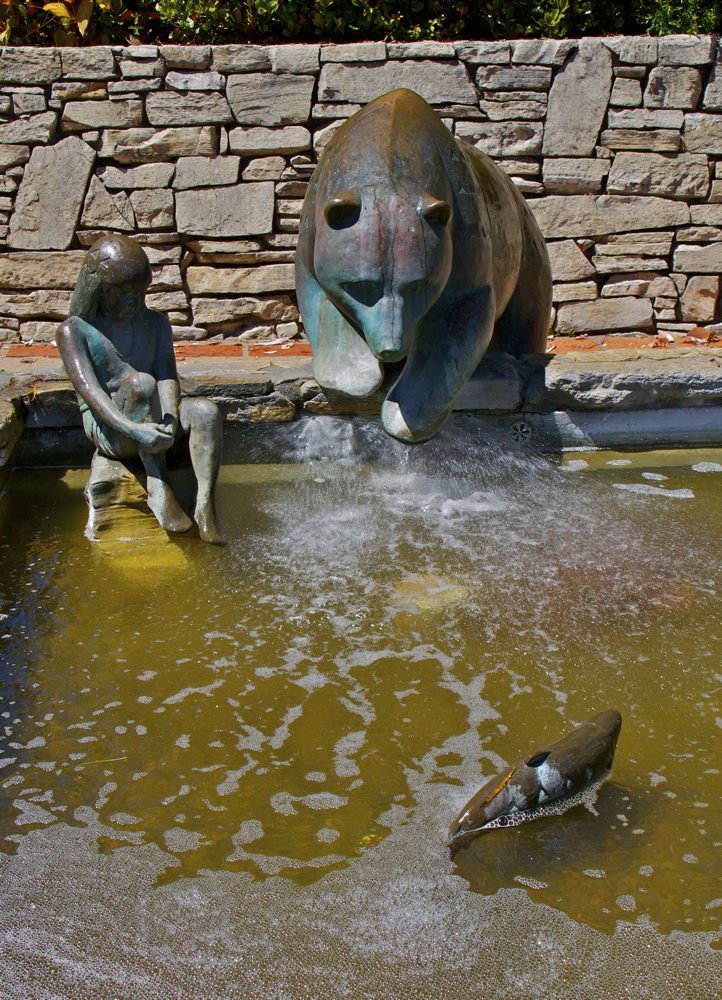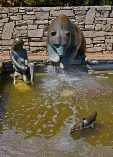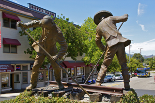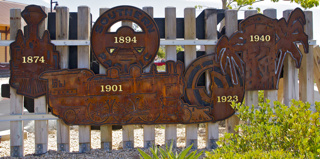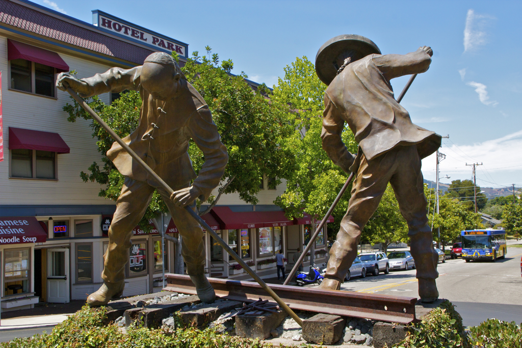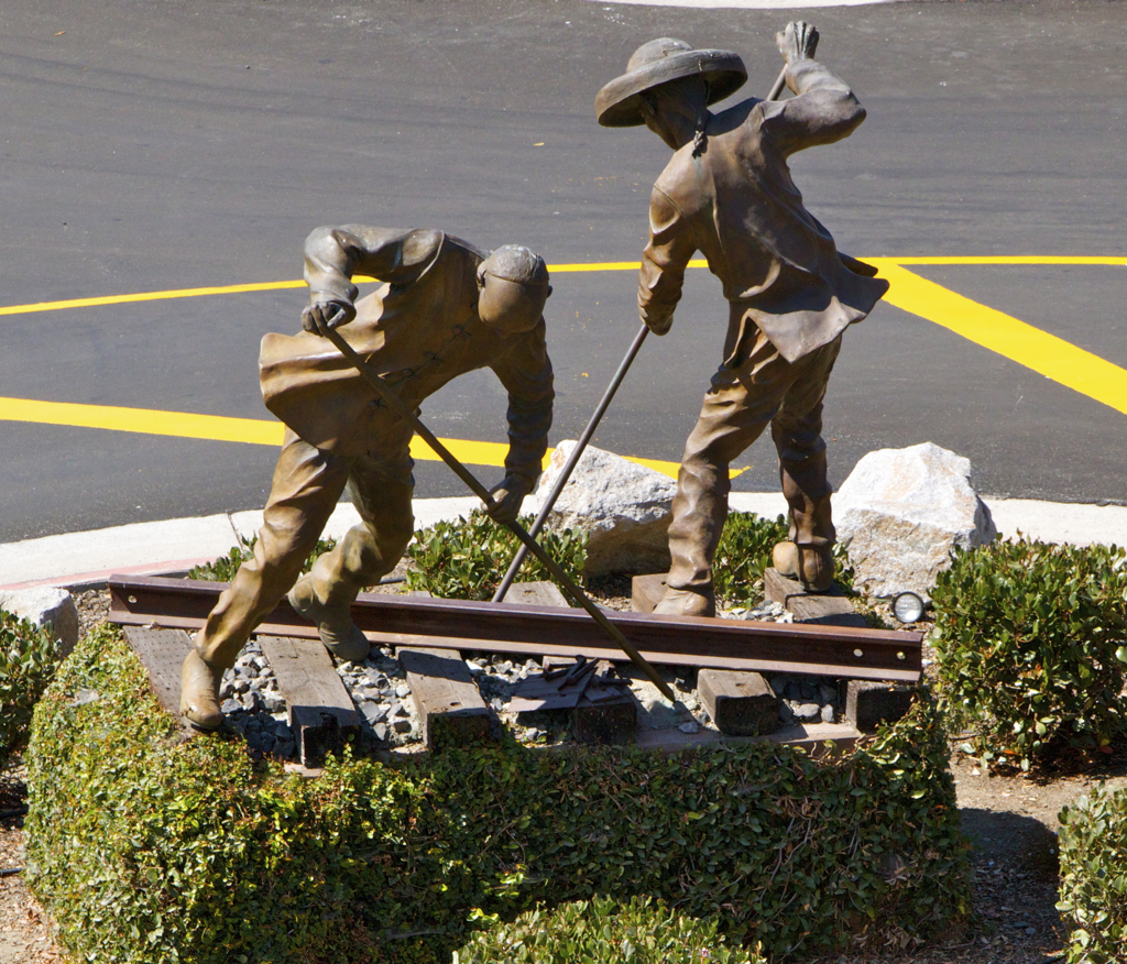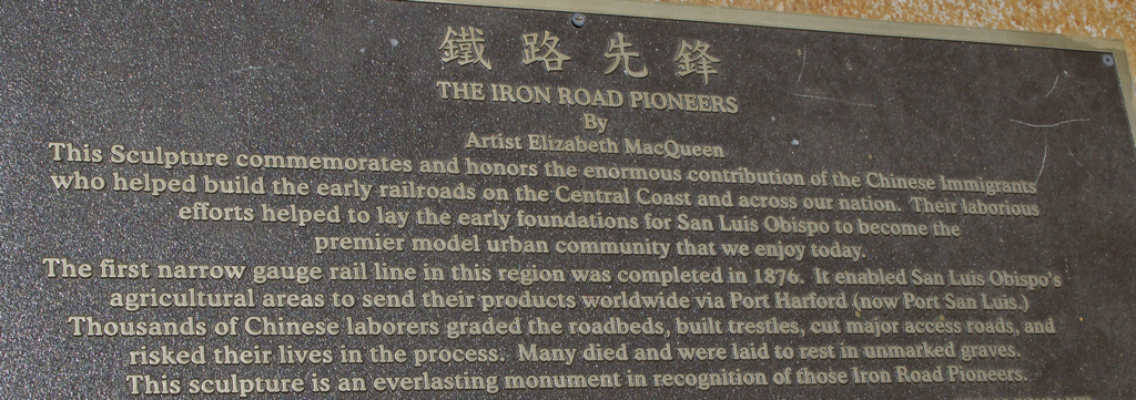 Two views of Iron Road Pioneers monument to Chinese immigrant railroad construction workers. |