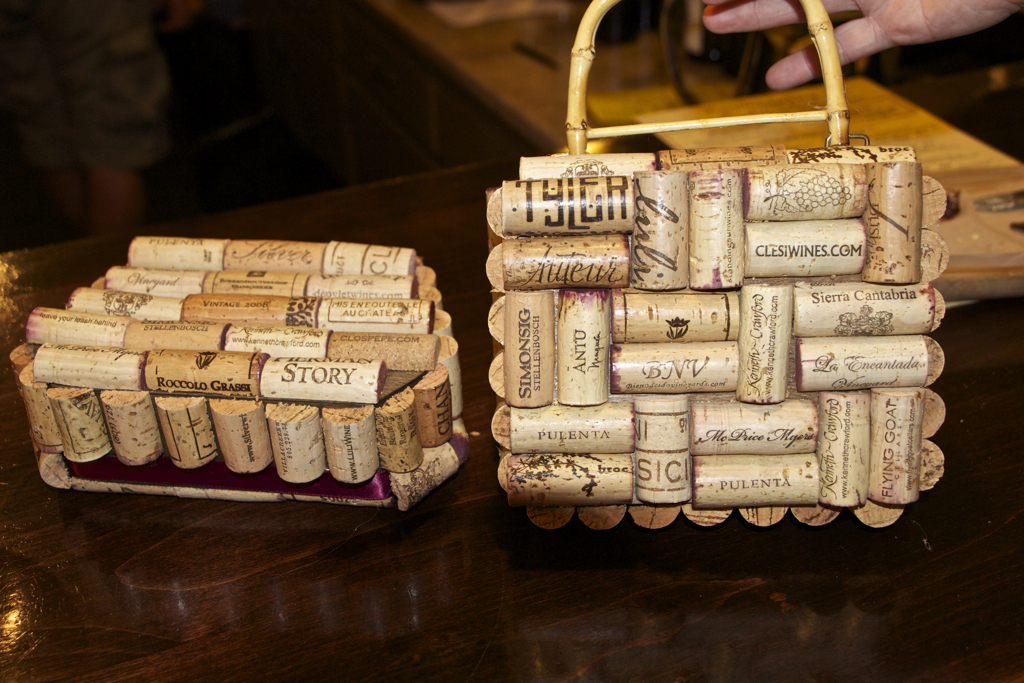 ![]() As with most wine tasting rooms, the Wandering Dog sold wine-related gifts, such as these wine cork purses. |