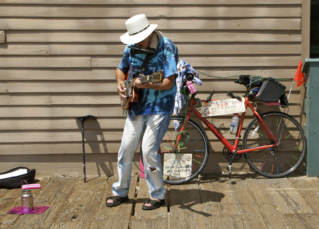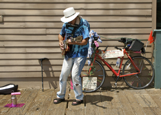 ![]() I thought his mode of transportation (bicycle) and amplification (batteries) fit well within my "Car Free Central Coast" trip report. |
