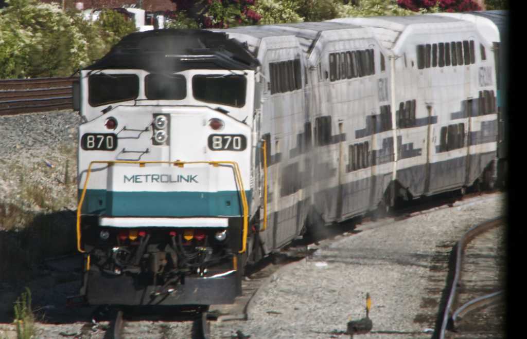 Approaching LA, a Metrolink waited on a siding for our passing. |