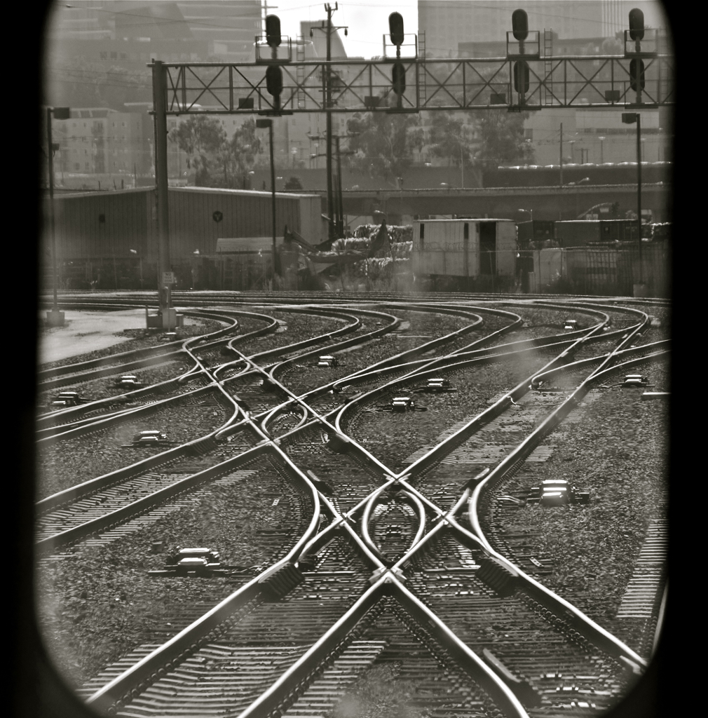 ![]() I turned this spaghetti bowl of tracks entering LAUS into black and white for a timeless emphasis. |