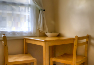 Morning Coffee for the adults, cute chairs for the small ones. |