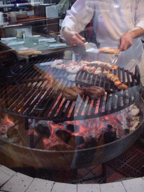 We walked a few feet in the sunny, shirtsleeve weather to the open-air covered