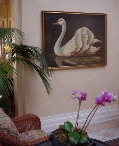 was painted yellow with white woodwork. A Santa Barbara scene painting
