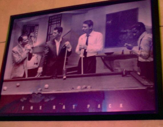 Rat Pack playing pool, and an even larger photo of New York City, pre 9/11.