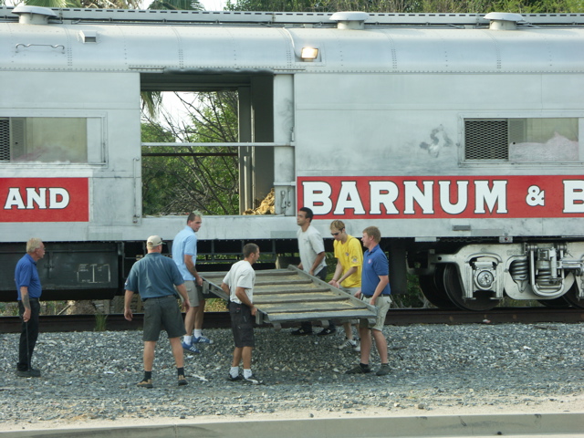 unloaded: 8 elephants, 14 horses, 2 zedonkeys, 2 alpakas, and 2