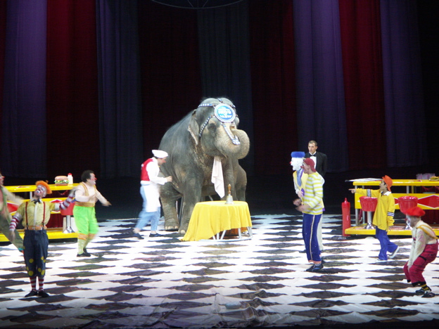 evening's performance, we went to the arena floor where the clowns and