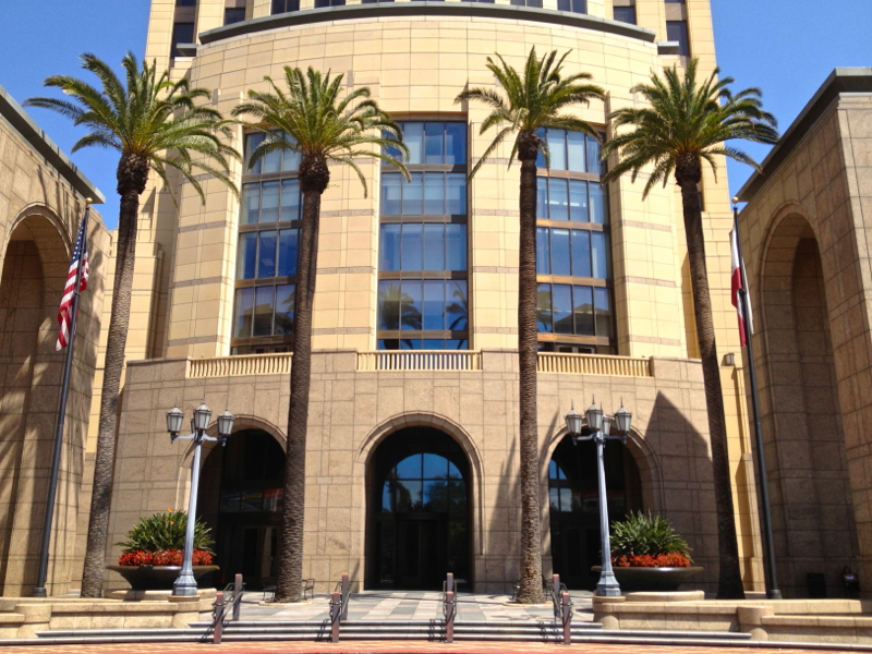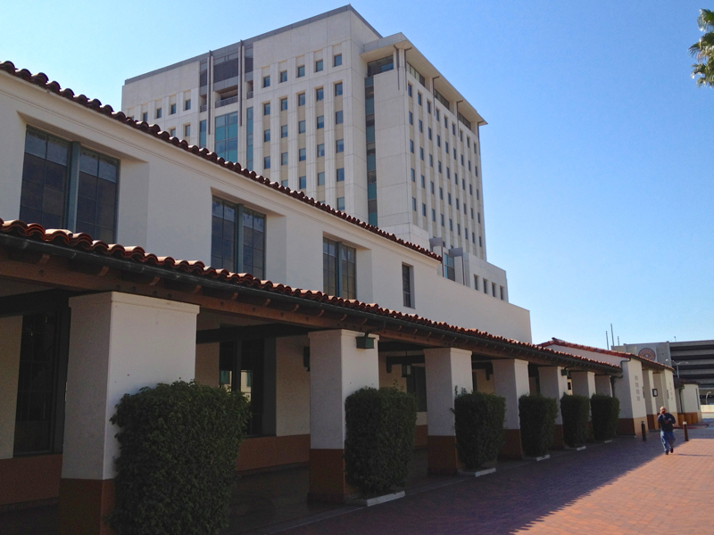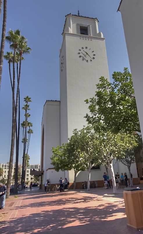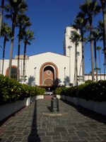 Main Entrance and Clock Tower from entry drive from Alameda Street.