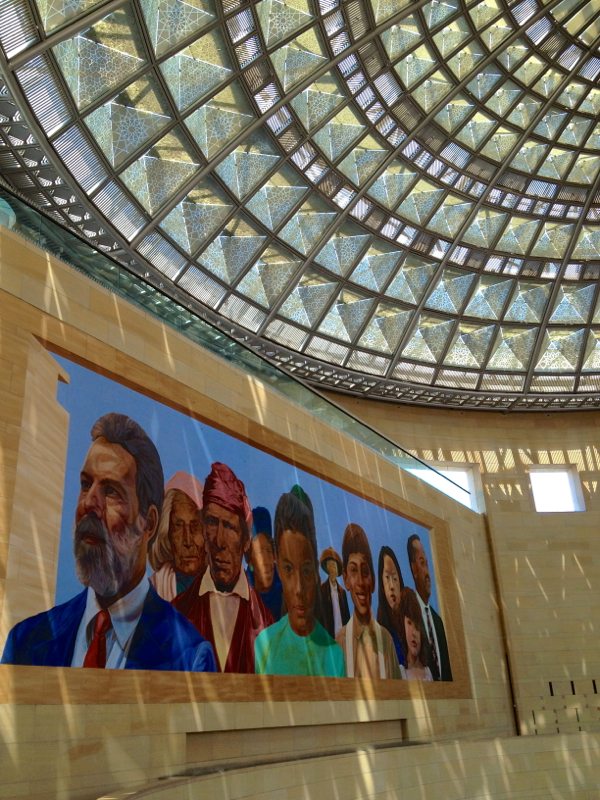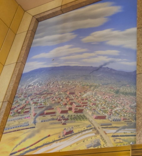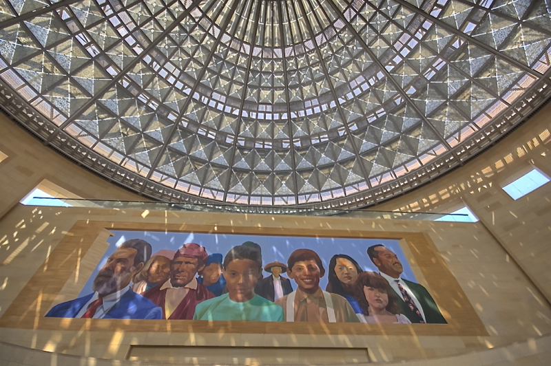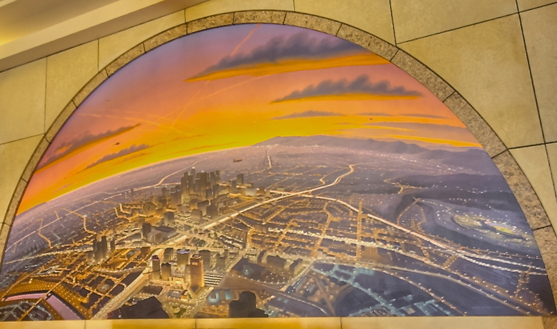 and glass dome soars over the lobby. Thematic artwork called City of Dreams, River of History, is one of may located throughout the East Portal.