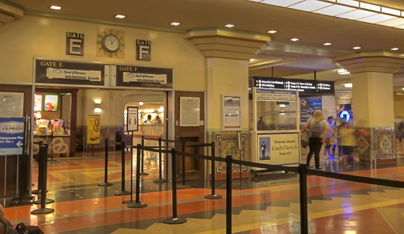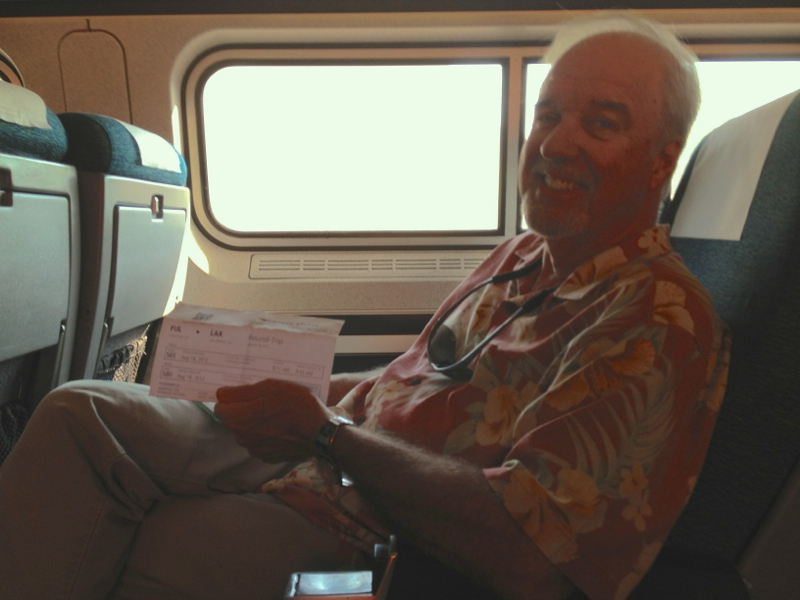 With time for a Starbucks Frap. and a seat in their air conditioning, we were ready to board our Surfliner for Fullerton.