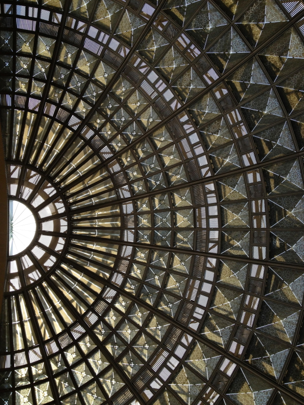 Ceiling of the Ticket Concourse. The chandeliers here and in the Waiting Room each weight 1.5 tons (3,000 lbs.).