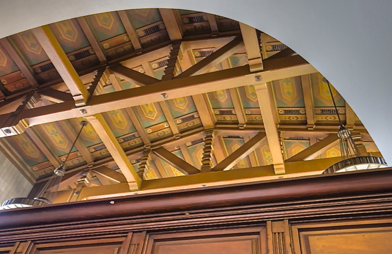 painted-beamed ceiling exemplifies Spanish Colonial Revival