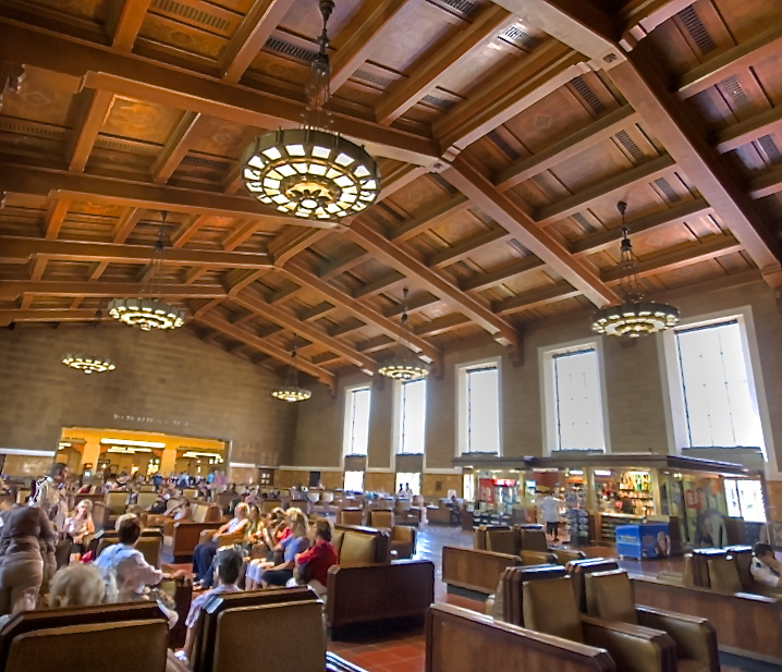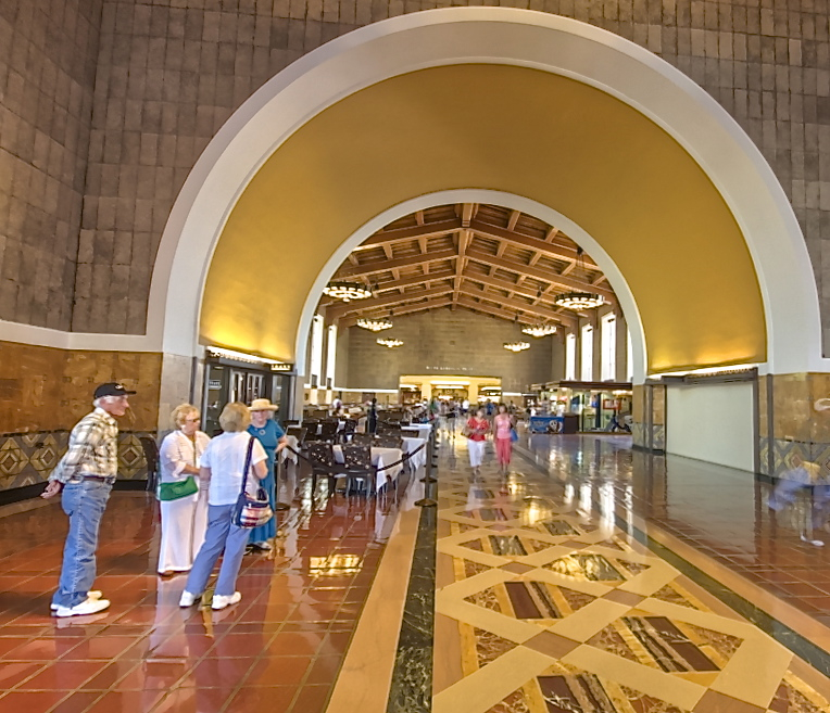largest room in Union Station. Enormous arched windows decorated