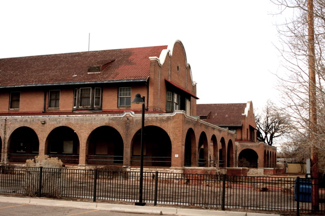 Revival Style. Its main facade and courtyard face the railroad tracks.