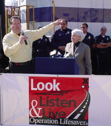invited to ride in the locomotive of a special "Operation Livesaver"