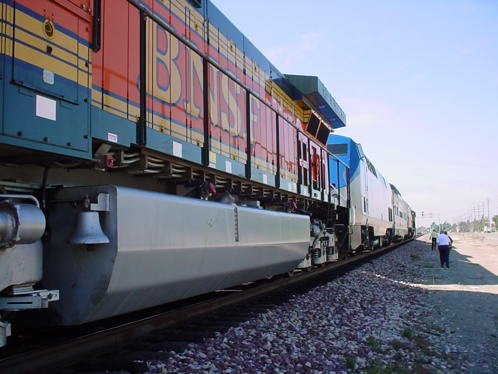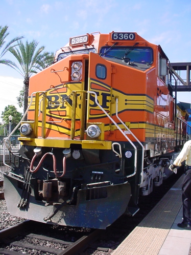 arrived with two leading engines, BNSF 5360 and Amtrak, and two
