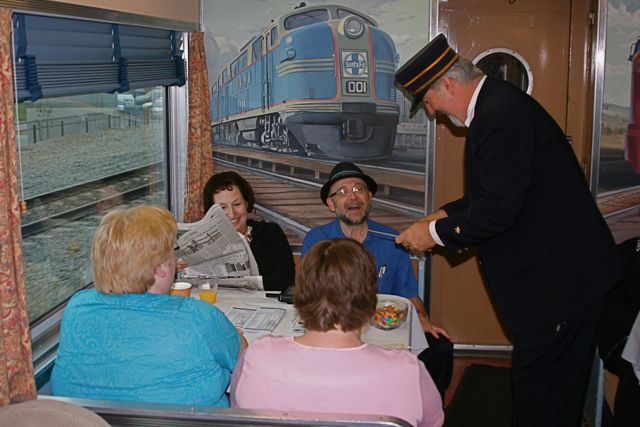 Guests detrained, took group photos, and a new, full complement of Overland Trail passengers boarded for