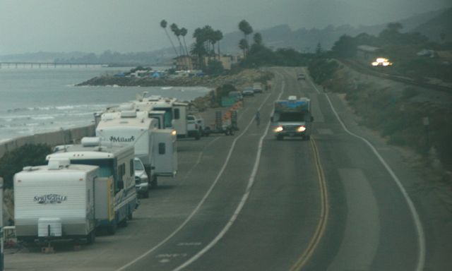 the coast past Ventura, Tom noticed a southbound Surfliner waiting for us