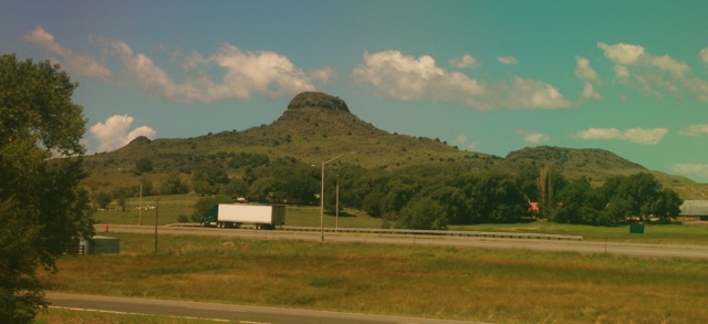about fifteen miles west of Las Vegas, New Mex., and is visible most of